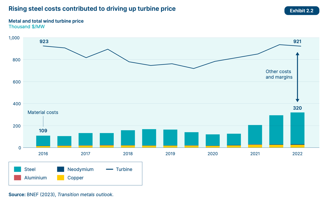 One of the other issues affecting project costs have been increases to turbine prices, which had otherwise been on a steady decline for the last decade. The primary cause of this has been price increases for materials, particularly steel and rare earth metals like neodymium.